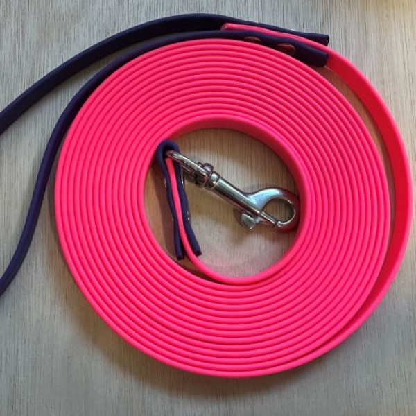 9mm Biothane Neonroze met paars handvat en musketonaanzet