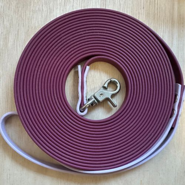 9mm Biothane wijnrood met pastelpaars handvat en musketonaanzet