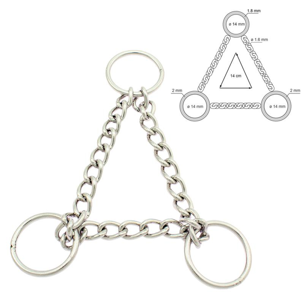 Chrome plated Ketting 14cm, 3 O-ringen 14mm breekkracht 120 kg