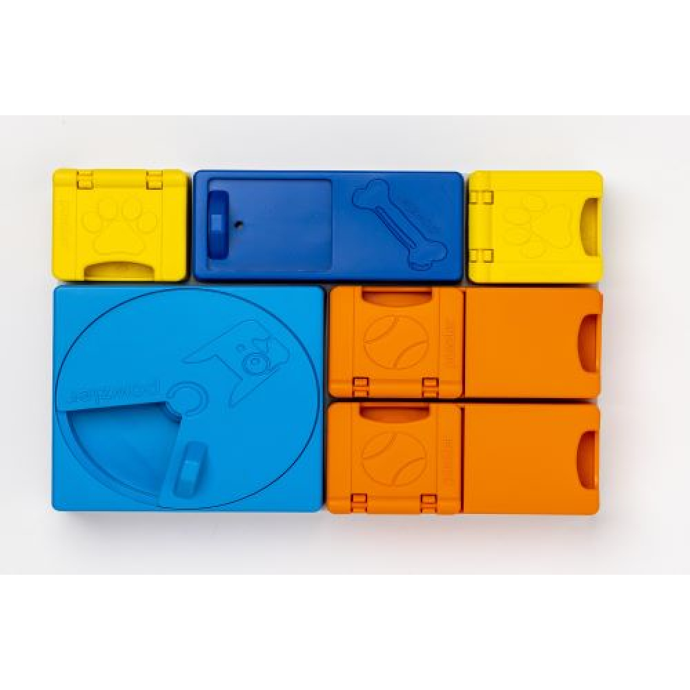 Ieder puzzelblok heeft zijn eigen mechanisme voor het verbergen van lekkernijen.
