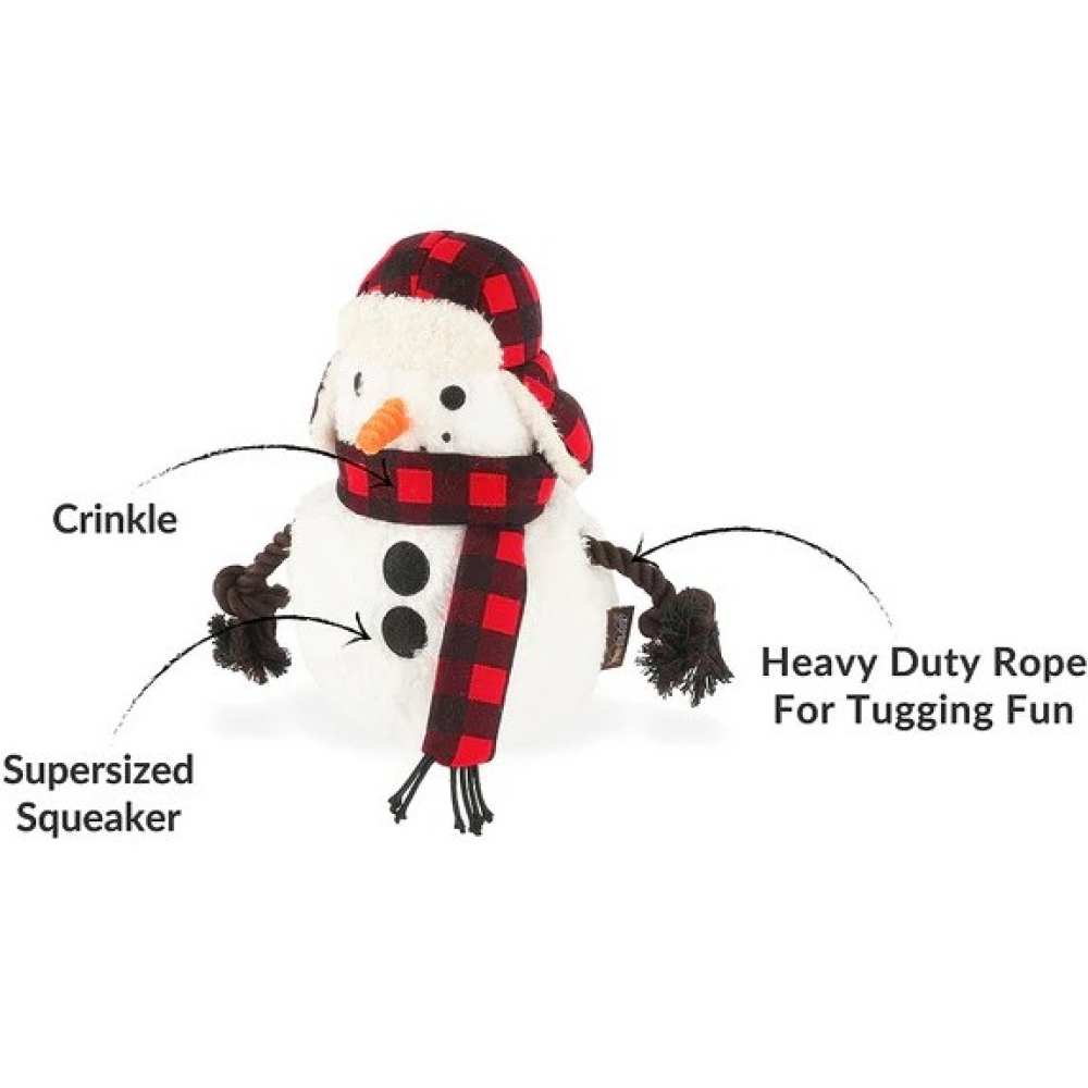De sneeuwman heeft een grote sqeeker en krinkelpapier voor veel speelplezier.