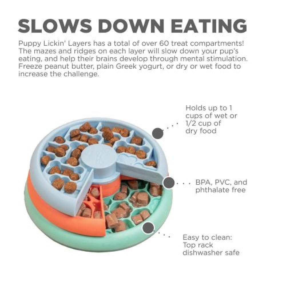 Puppy Lickin' Layers is een level 2 puzzelspel voor honden ontwikkeld door Nina Ottosson en aangeboden door Outward Hound.