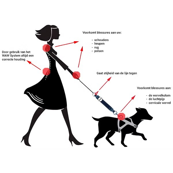 WAW, het perfecte hulpmiddel om de impact van de trekkracht van de hond tot wel 40% te verminderen.